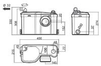 - Broyeur avec 4 raccordements pour 1 entrée WC et 3 entrée de diamètre 40 mm (dont 2 entrées latérales basses)