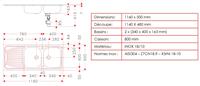 - Evier inox 18/10 (18 % chrome et 10% nickel) - livré avec vidage et siphon - Réversible