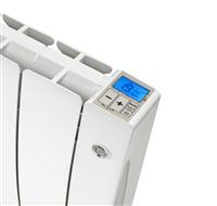 - Régulation avec affichage digital LCD positionnée en haut à droite du radiateur, comprenant les fonctions : Fonction sélecteur de mode (auto, confort, Eco, Arrêt chauffage, Hors gel)