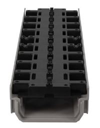 - un corps de caniveau injecté en PVC gris (CAB773), muni d’opercules permettant de réaliser des angles et/ou des piquages à 90°