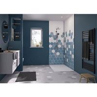 CARACTERISTIQUES • Panneau composite en aluminium. Matériau hydrofuge, imperméable et léger • Surface lisse, 12 fi nitions disponibles • Possibilité de mixer les panneaux entre eux selon les envies • Kits d’installation (pour montage en niche ou en angle) et profi lés à l’unité pour les autres confi gurations