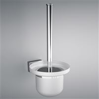 L’ensemble brosse WC NERVIÓN dispose d’un support fixe mural carré et d’un manche en zamak et laiton finition chromée.