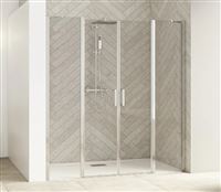 2 Portes pivotantes intérieure / extérieure à 180° Sans seuil avec 2 parties fixes Verre trempé 6 mm Traitement anticalcaire Hauteur 200 cm Largeur (mini/maxi) 117/121 Passage 60 cm